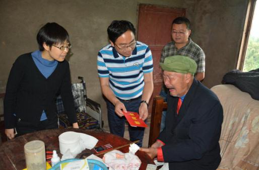 圖為:區(qū)委常委劉江、區(qū)殘聯(lián)理事長(zhǎng)劉偉雍慰問(wèn)北外鎮(zhèn)貧困殘疾人徐洪術(shù)