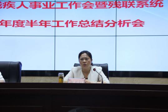 與會(huì)人員觀看了渠縣殘疾人事業(yè)發(fā)展專題片,渠縣人民政府副縣長(zhǎng)牟軍致了詞,各縣(市、區(qū))殘聯(lián)和經(jīng)開(kāi)區(qū)社會(huì)事務(wù)局負(fù)責(zé)同志匯報(bào)了上半年工作情況及下步工作打算,達(dá)州聯(lián)通公司黨委書(shū)記、總經(jīng)理胡耀萍為“智慧量服”提供技術(shù)支撐服務(wù)講了話,市殘聯(lián)黨組書(shū)記、理事長(zhǎng)趙本權(quán)作了總結(jié)。