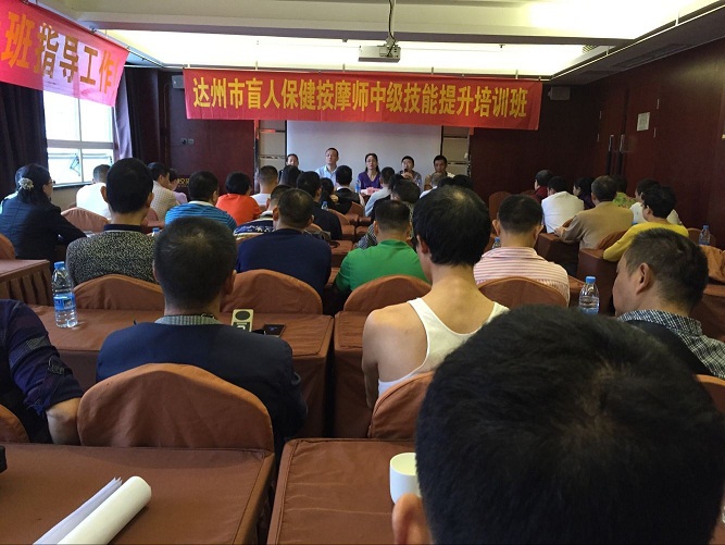 在喜迎黨的十九大召開之際,為融合社會(huì)發(fā)展持續(xù)推進(jìn),加快推進(jìn)全市盲人保健按摩發(fā)展,提高技能水平,促進(jìn)盲人穩(wěn)定就業(yè),脫貧奔康。10月9日上午,在大竹縣喜悅來酒店會(huì)議室,大竹縣承辦 “達(dá)州市盲人保健按摩師中級(jí)培訓(xùn)能力提升班”開班儀式。此培訓(xùn)班,邀請(qǐng)了重慶市按摩醫(yī)院主任黃維乾、八一康復(fù)中心二級(jí)按摩醫(yī)師助教王斌等6位保健按摩專家進(jìn)行授課。來自全市55名中級(jí)職稱盲人保健按摩師參加培訓(xùn)。市殘聯(lián)副理事長江林紅、市殘疾人就業(yè)服務(wù)部主任龐厚武、大竹縣殘聯(lián)理事長徐博彬、大竹縣殘聯(lián)副理事長蔣敏出席開班儀式。開班儀式由市殘聯(lián)教就科科長方勇主持。