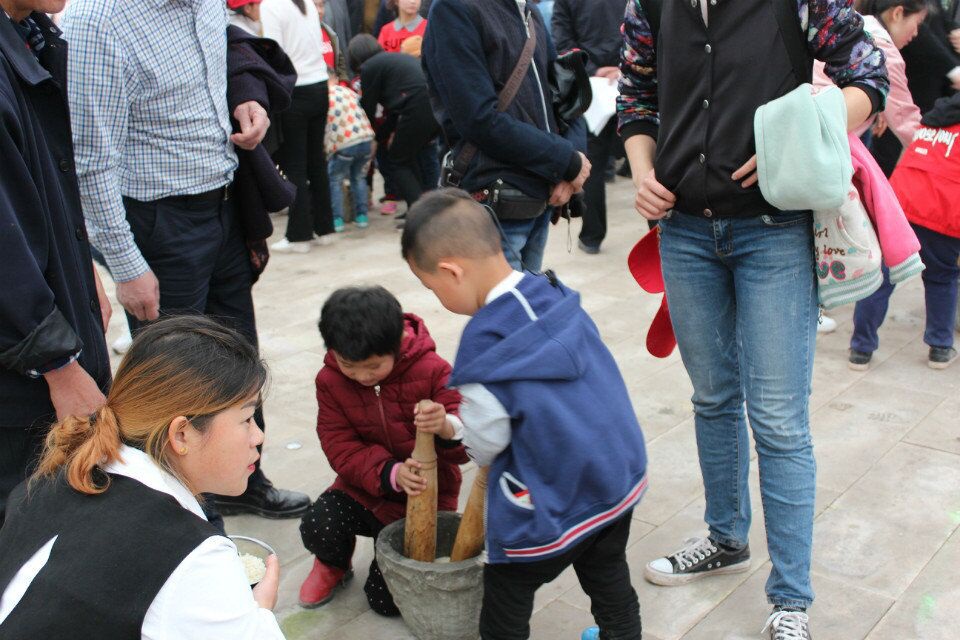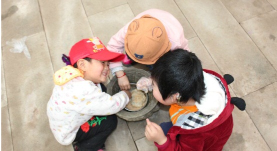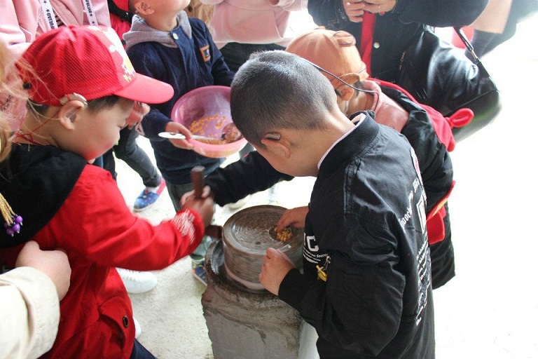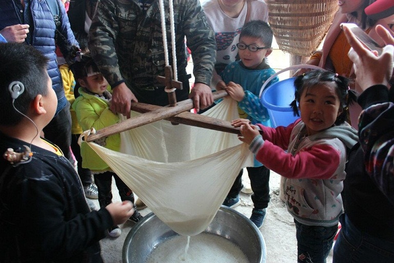 圖二:孩子在家長的帶領(lǐng)下石磨豆汁