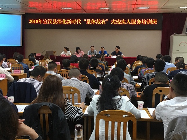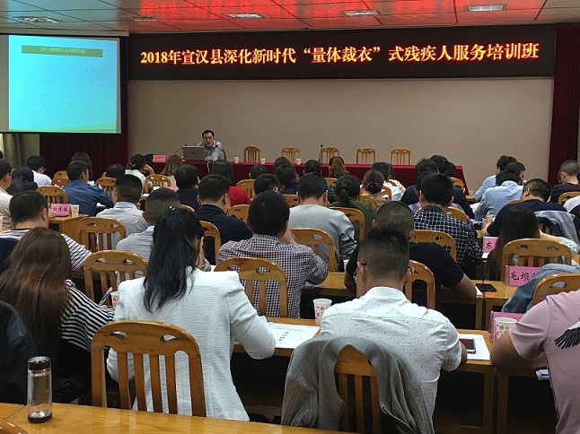 4月22—23日,宣漢縣舉辦了2018年深化新時(shí)代“量體裁衣”式殘疾人服務(wù)培訓(xùn)班,達(dá)州市殘聯(lián)教就科科長(zhǎng)方勇同志,宣漢縣殘聯(lián)機(jī)關(guān)全體干部職工、各鄉(xiāng)(鎮(zhèn))殘聯(lián)專職委員、村(社區(qū))殘協(xié)聯(lián)絡(luò)員代表共計(jì)130人參加了培訓(xùn),縣殘聯(lián)黨組書記,理事長(zhǎng)姜本君同志主持開班儀式。