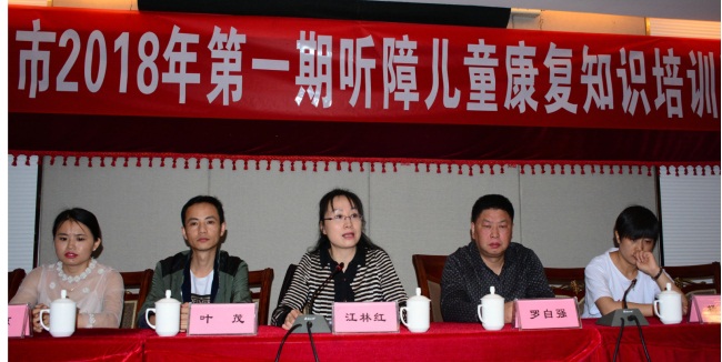 5月5日,為期兩天的達(dá)州市2018年第一期聽障兒童康復(fù)知訓(xùn)培訓(xùn)班開課、縣(市、區(qū))殘聯(lián)分管康復(fù)的領(lǐng)導(dǎo)、定點(diǎn)康復(fù)機(jī)構(gòu)的康復(fù)教師及40余名聽障兒童家長參加了培訓(xùn),市殘聯(lián)黨組成員、副理事長江林紅、市殘聯(lián)黨組成員、機(jī)關(guān)黨委書記羅自強(qiáng)、康復(fù)科科長葉茂出席了開班儀式。