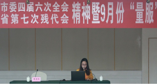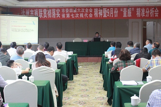 2018年9月14日上午,達(dá)州市殘聯(lián)在達(dá)州賓館四樓會議室召開9月份“量服”精準(zhǔn)分析會。市殘聯(lián)班子成員,會機(jī)關(guān)干部職工及直屬單位負(fù)責(zé)人,各縣(市、區(qū))殘聯(lián)班子成員、業(yè)務(wù)科室負(fù)責(zé)人,經(jīng)開區(qū)社會事務(wù)局殘疾人工作者參加了會議。會議由黨組成員、機(jī)關(guān)黨委書記羅自強(qiáng)主持。