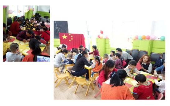圖2:家長和孩子正在用自己雙手為祖國媽媽制作生日禮物。