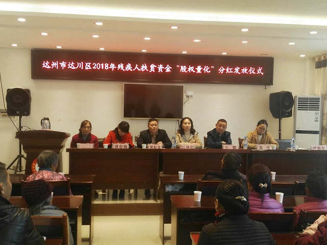 分紅儀式上,殘疾人代表發(fā)了感言,月亮灣種植專業(yè)合作社負責人對專合社的情況作了介紹,萬家鎮(zhèn)鎮(zhèn)長黃趾宣作了鎮(zhèn)發(fā)展情況介紹,達川區(qū)理事長王霞就扶貧資金股權量化政策等內容進行了詳細介紹。