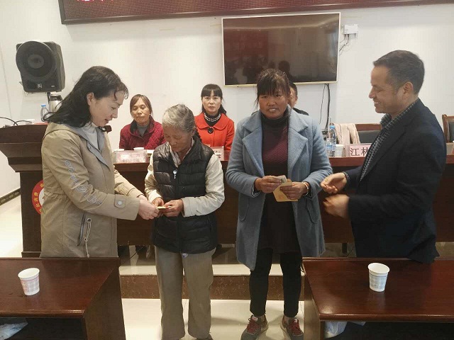 恰逢“立冬”日,細雨飄零,寒意漸濃。會議室里卻暖意融融,13名建檔立卡戶殘疾人早早到來,他們是“股東”,臉上洋溢著自豪,懷著激動的心情等待“殘疾人扶貧資金實施股權量化項目”分紅儀式。月亮灣種植專業(yè)合作社將現場為13名建檔立卡殘疾人發(fā)放了年度殘疾人股權量化紅利,人均1千元。