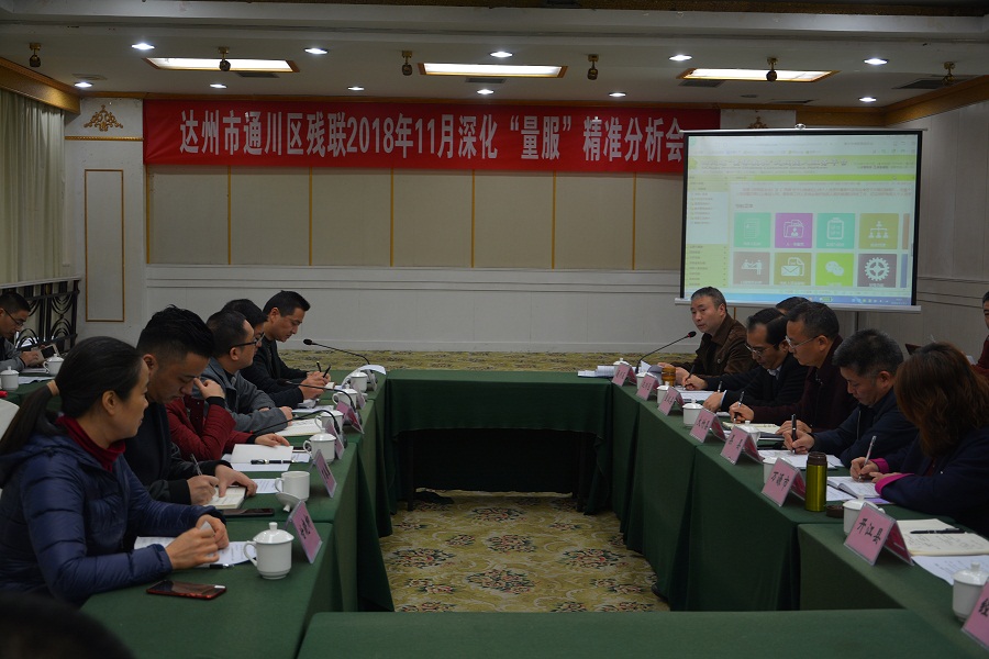 2018年11月14日至16日,省殘聯(lián)黨組成員、機關(guān)黨委書記梁峰在市殘聯(lián)黨組書記、理事長趙本權(quán)陪同下蒞臨通川區(qū)指導(dǎo)11月“量服”精準(zhǔn)分析工作,主持召開了“量服”專題座談會,并深入到殘疾人家庭開展“量服”入戶調(diào)研。各縣(市、區(qū))殘聯(lián)理事長、“量服”辦負(fù)責(zé)人、通川區(qū)各鄉(xiāng)鎮(zhèn)辦委殘聯(lián)理事長、專干、“量服”服務(wù)機構(gòu)共計80余人參加了分析會。