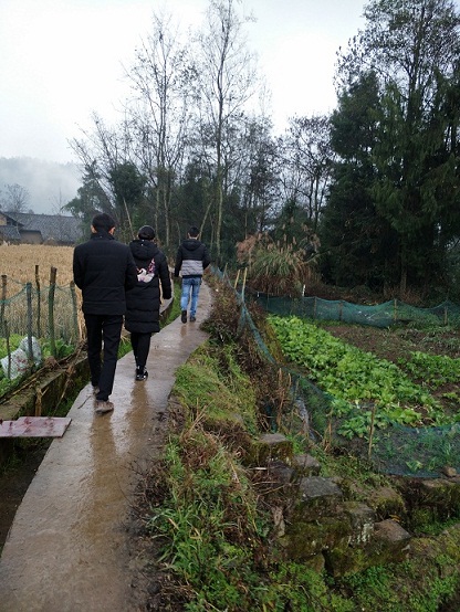 (圖:市殘聯黨組書記、理事長趙本權一行現場查看生產、村道實況)