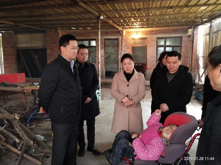 家住惠民嘉苑的杜雙雙是一名肢體一級殘疾人,不幸患上了“漸凍癥”,長期臥床在家,近期又做了手術(shù),靠昂貴的藥物維持生命,孩子上幼兒園,老公和父母都在附近打零工,全家打工所得幾乎都為杜雙雙治病拿藥,家庭經(jīng)濟十分困難。家住新酢坊社區(qū)4組居李尚虎是一名腦癱兒童,入廁吃飯等基本生活不能自理,父母離異,孩子跟婆婆爺爺成長,家庭十分困難。王市長詳細詢問了他們的生活情況、身體狀況,了解了家庭收支情況;并叮囑殘聯(lián)和社區(qū)的隨行人員,要安排社區(qū)工作人員定期入戶對困難殘疾人進行回訪,要隨時跟蹤為他們服務(wù)的落實情況,幫助他們解決實際問題。同時,王市長代表黨委政府向困難殘疾人送去了節(jié)日祝福和慰問金及物資,并鼓勵他們要樹立生活的信心,積極戰(zhàn)勝病魔,相信明天會更好。