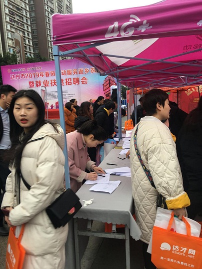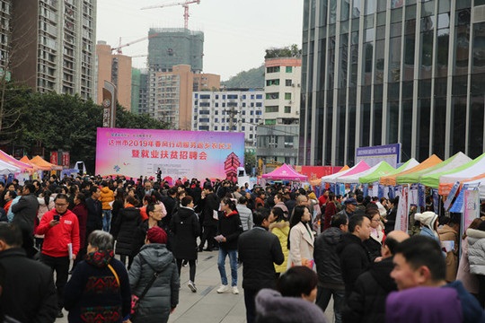 2月15—16日,由市人社局、市經(jīng)信局、市扶貧開發(fā)局、市總工會(huì)、市婦聯(lián)、市殘聯(lián)共同主辦,市殘疾人就業(yè)服務(wù)部等單位和部門協(xié)辦,以“促進(jìn)轉(zhuǎn)移就業(yè),助力脫貧攻堅(jiān)”為主題的達(dá)州市2019年春風(fēng)行動(dòng)服務(wù)返鄉(xiāng)農(nóng)民工暨就業(yè)扶貧大型招聘會(huì)在達(dá)州市西外羅浮廣場(chǎng)舉行。