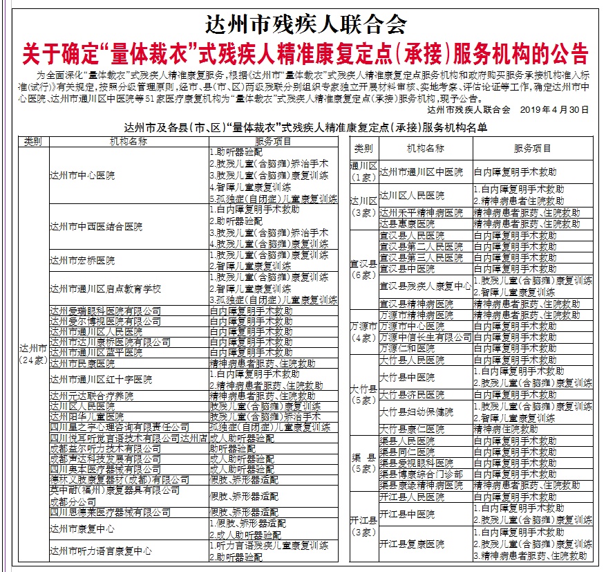 達(dá)州確定51家醫(yī)療康復(fù)機(jī)構(gòu)為精準(zhǔn)康復(fù)定點(承接)服務(wù)機(jī)構(gòu)