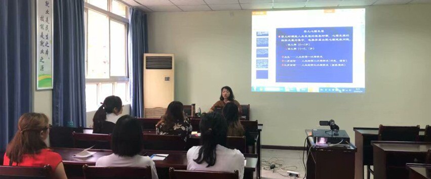 圖二:劉鈺老師在給保育員培訓(xùn)幼兒保健知識(shí))