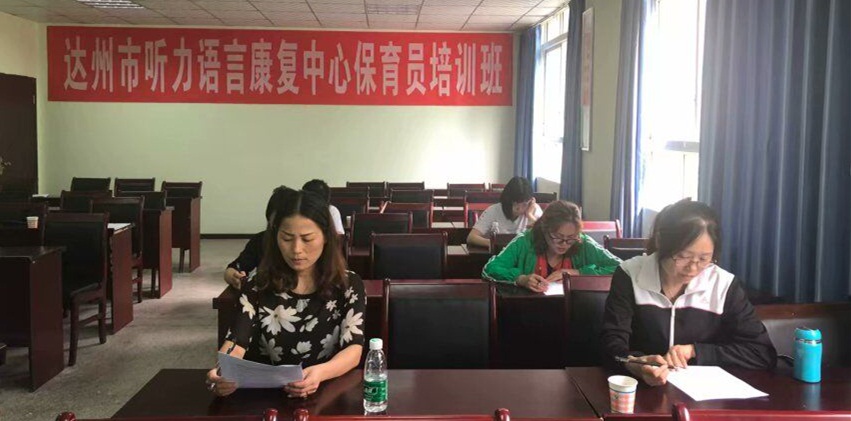 5月23日上午,市語(yǔ)康中心在達(dá)州市四通培訓(xùn)學(xué)校舉行首期保育員培訓(xùn)班。此次培訓(xùn)目的是為了貫徹落實(shí)基層聽(tīng)力語(yǔ)言康復(fù)機(jī)構(gòu)規(guī)范建設(shè)要求,對(duì)市語(yǔ)康中心全體保育員進(jìn)行了康復(fù)保育職業(yè)培訓(xùn)。