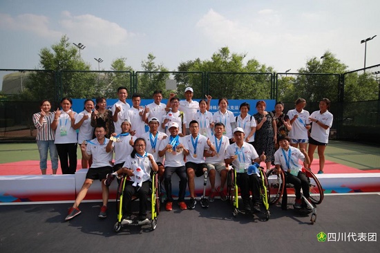 2019年5月25日,全國第十屆殘運(yùn)會(huì)暨第七屆特奧會(huì)網(wǎng)球項(xiàng)目正式收官。經(jīng)過五天激烈的比賽,四川省網(wǎng)球隊(duì)共贏取了8金3.5銀3銅,不僅攬獲了金牌總數(shù)的一半,更在全國所有網(wǎng)球隊(duì)中占據(jù)了金牌數(shù)第一、獎(jiǎng)牌數(shù)第一和積分第一。值得驕傲的是,達(dá)州籍殘疾人網(wǎng)球運(yùn)動(dòng)員王紫瑩、劉洋、胡利華、郭惠民各自為四川代表隊(duì)收獲一枚金牌,成為賽場熱點(diǎn)。