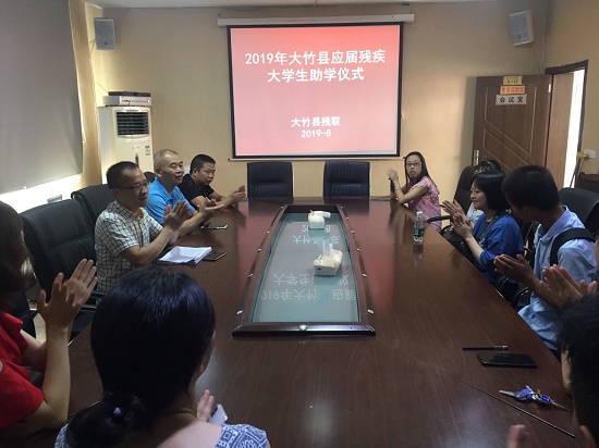 為切實(shí)解決今年高考錄取殘疾考生入學(xué)前的經(jīng)費(fèi)困難問題,8月30日上午9點(diǎn),我會在殘聯(lián)會議室舉行對今年高考錄取貧困殘疾學(xué)生的資助儀式,儀式由殘聯(lián)黨組成員、機(jī)關(guān)支部書記蔣才成主持,殘聯(lián)相關(guān)人員及申請資助的7名殘疾學(xué)生參加資助儀式。