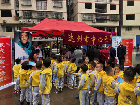 (圖為雙河鎮(zhèn)為兒童進行殘疾預防篩查)