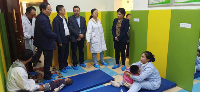 (圖為趙理事長一行看望宣漢縣康復中心兒童康復情況)