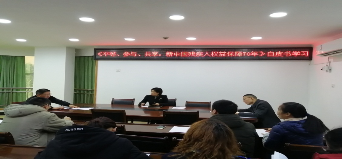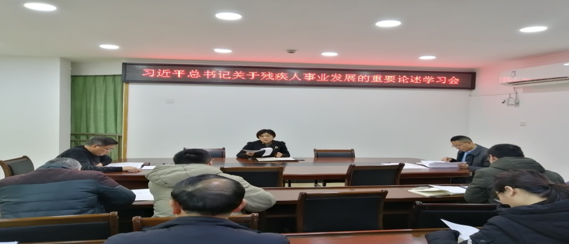 黨的十八大以來,習(xí)近平總書記一直格外關(guān)心殘疾人這個(gè)特殊困難群體,明確強(qiáng)調(diào)“全面建成小康社會(huì),殘疾人一個(gè)也不能少”。感悟總書記對殘疾人朋友和殘疾人事業(yè)的關(guān)愛與支持。為貫徹落實(shí)中央、省委領(lǐng)導(dǎo)關(guān)于殘疾人工作的重要講話及指示精神,12月16日,市殘聯(lián)組織全體職工認(rèn)真學(xué)習(xí)習(xí)近平新時(shí)代中國特色社會(huì)主義思想和習(xí)近平總書記關(guān)于殘疾人事業(yè)發(fā)展的重要論述,組織學(xué)習(xí)“一法四條例”和《平等、參與、共享:新中國殘疾人權(quán)益保障70周年》白皮書等重要內(nèi)容。