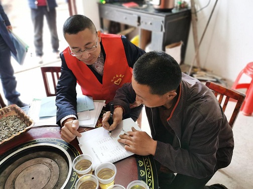圖四:副縣級(jí)干部羅自強(qiáng)了解幫扶貧困戶家庭情況