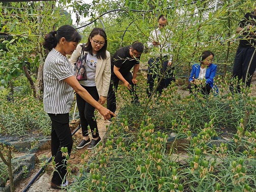 (圖1為在官渡鎮(zhèn)查看殘疾人馬德菊中藥材種植情況)
