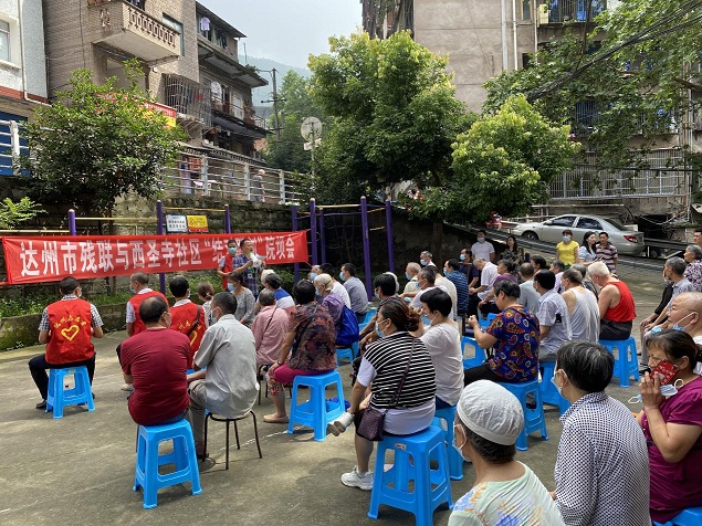 2020年6月29日,達(dá)州市殘聯(lián)志愿者服務(wù)隊(duì)赴通川區(qū)西圣寺社區(qū)開展“結(jié)對(duì)聯(lián)創(chuàng)”院壩會(huì),達(dá)州市殘聯(lián)黨組書記林建祥,達(dá)州市殘聯(lián)黨組成員、副理事長(zhǎng)楊文平出席活動(dòng)。
