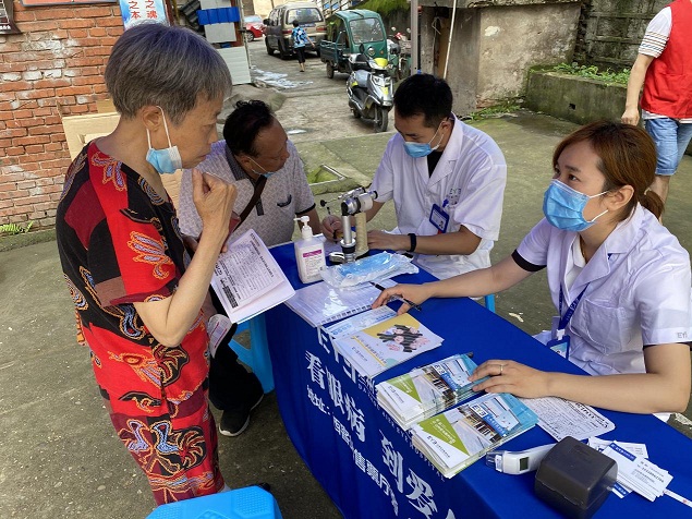 達(dá)州市殘聯(lián)志愿者服務(wù)隊(duì)為西圣寺社區(qū)居民普及殘疾預(yù)防及殘疾人康復(fù)知識(shí),開展眼病義診篩查,為社區(qū)居民現(xiàn)場(chǎng)提供免費(fèi)眼病檢查、測(cè)量血壓、指導(dǎo)安全用藥等服務(wù),前來咨詢求診的群眾絡(luò)繹不絕。