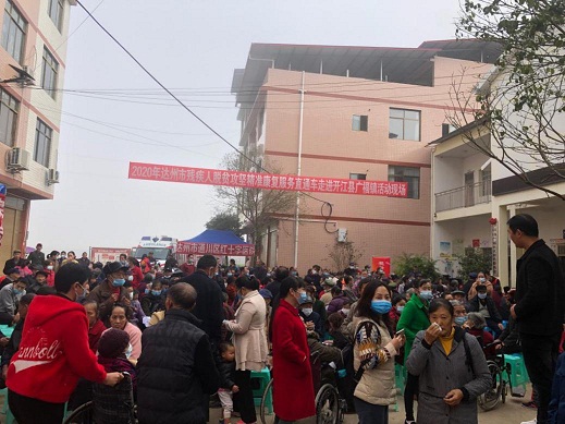 2020年10月22日至23日,市殘聯(lián)黨組書記、理事長林建祥率領(lǐng)市康復(fù)中心、通川區(qū)紅十字醫(yī)院、達(dá)川區(qū)人民醫(yī)院等市級(jí)定點(diǎn)康復(fù)醫(yī)療機(jī)構(gòu),抽調(diào)30余名醫(yī)療康復(fù)技術(shù)骨干,組成視力、輔具、腦癱及智障、孤獨(dú)癥兒童、聽力、精神等7個(gè)醫(yī)療康復(fù)專家組,奔赴開江縣廣福鎮(zhèn)、任市鎮(zhèn),成功開展了達(dá)州市殘疾人脫貧攻堅(jiān)精準(zhǔn)康復(fù)服務(wù)“直通車”活動(dòng)。開江縣委常委、總工會(huì)主席段昌林,市殘聯(lián)黨組成員、副理事長楊文平,開江縣殘聯(lián)黨組書記、理事長蔣勝之陪同參加活動(dòng)。