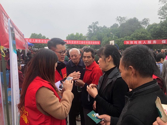 (圖7為任市鎮(zhèn)活動(dòng)現(xiàn)場,工作人員向殘疾人及親友宣傳、普及康復(fù)救助政策)