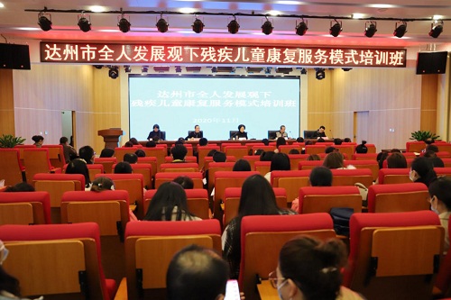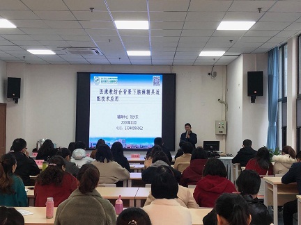 (圖3為四川省預(yù)防醫(yī)學(xué)會秘書長聶晶講解醫(yī)康教結(jié)合背景下孤獨癥兒童康復(fù)訓(xùn)練內(nèi)容及方法)