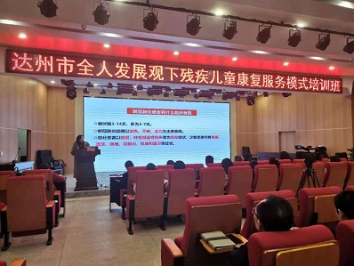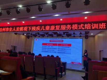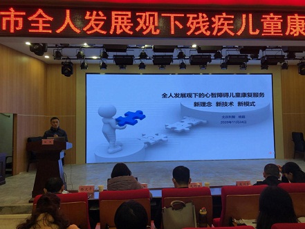 (圖2為省輔具中心主任劉夕東講解醫(yī)康教結(jié)合背景下腦癱兒童輔具適配技術(shù)及運用)
