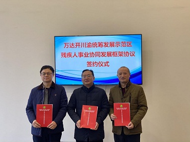 為進(jìn)一步深入貫徹推動(dòng)成渝地區(qū)雙城經(jīng)濟(jì)圈重大戰(zhàn)略部署,積極融入萬達(dá)開川渝統(tǒng)籌發(fā)展示范區(qū)的創(chuàng)建,推動(dòng)萬達(dá)開地區(qū)殘疾人事業(yè)的協(xié)同發(fā)展,2020年12月9日,達(dá)州市殘聯(lián)、萬州區(qū)殘聯(lián)、開州區(qū)殘聯(lián)在達(dá)州簽訂萬達(dá)開川渝統(tǒng)籌發(fā)展示范區(qū)殘疾人事業(yè)協(xié)同發(fā)展框架協(xié)議。