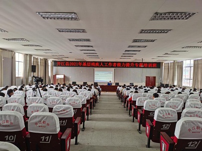 2021年4月26日,開江縣殘聯(lián)在開江縣職業(yè)中學(xué)學(xué)術(shù)報(bào)告廳舉辦2021年全縣基層殘疾人工作者能力提升專題培訓(xùn)班?h殘聯(lián)全體職工、全縣13個(gè)鄉(xiāng)鎮(zhèn)(街道)的殘疾人工作分管領(lǐng)導(dǎo)、殘聯(lián)理事長(zhǎng)、殘疾人專職委員和162個(gè)村(社區(qū))殘疾人兼職委員參加了此次會(huì)議。會(huì)議由縣殘聯(lián)副理事長(zhǎng)陳海峰同志主持。