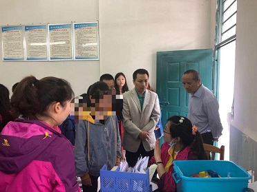 (圖2為林建祥進(jìn)校園查看殘疾兒童預(yù)防篩查現(xiàn)場)