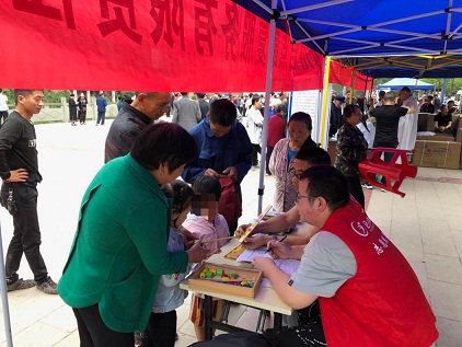 (圖4為黃忠鎮(zhèn)活動現(xiàn)場,兒童篩查組開展殘疾預(yù)防篩查)