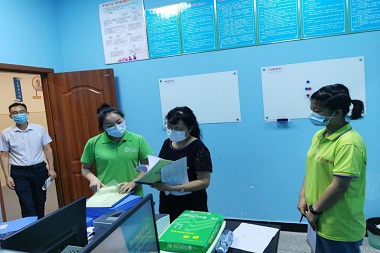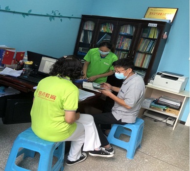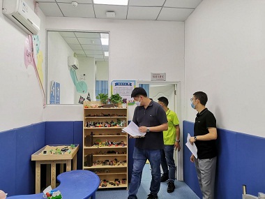 圖5:省殘聯(lián)第四康復(fù)專家評估組成員、香港復(fù)康會四川代表處主任桂源現(xiàn)場抽評機(jī)構(gòu)設(shè)施設(shè)備情況