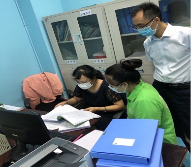 圖3:省殘聯(lián)第四康復(fù)專家評估組成員、成都市第一人民醫(yī)院兒童康復(fù)科主任董小麗現(xiàn)場抽評檔案資料