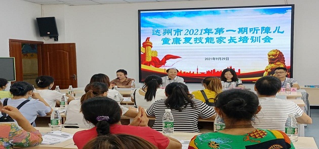 2021年9月29日,為深入推進(jìn)黨史學(xué)習(xí)教育“我為群眾辦實(shí)事”實(shí)踐活動(dòng),貫徹落實(shí)聽障兒童康復(fù)救助制度,推進(jìn)“十四五”殘疾兒童早期干預(yù)試點(diǎn)項(xiàng)目,普及聽力語(yǔ)言康復(fù)知識(shí),提升聽障兒童家長(zhǎng)家庭康復(fù)教育能力,促進(jìn)家校深度融合,實(shí)現(xiàn)聽障兒童早發(fā)現(xiàn)、早干預(yù)、早康復(fù)的目標(biāo),達(dá)州市聽力語(yǔ)言康復(fù)中心舉辦了全市2021年第一期聽障兒童康復(fù)知識(shí)家長(zhǎng)培訓(xùn)班,70余名聽障兒童家長(zhǎng)參加了培訓(xùn)。