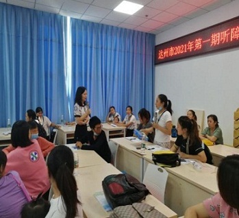 本次培訓(xùn)班得到了四川省聽力語(yǔ)言康復(fù)中心大力支持,選派聽障兒童學(xué)前教育及聽覺口語(yǔ)法資深專家鄭丹來(lái)到達(dá)州,結(jié)合聽障兒童康復(fù)狀況、家長(zhǎng)急需的家庭康復(fù)技能,通過一個(gè)個(gè)生動(dòng)的案例分析、康復(fù)教育方案設(shè)計(jì)、康復(fù)技能演示,深入淺出地為聽障兒童家長(zhǎng)授課。課堂上,參訓(xùn)家長(zhǎng)聚精會(huì)神地認(rèn)真聽講,細(xì)心作筆記,主動(dòng)參與互動(dòng),學(xué)習(xí)氣氛在學(xué)活躍。