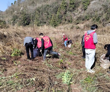 (圖2:幫助村集體經(jīng)濟(jì)組織采收中藥材)