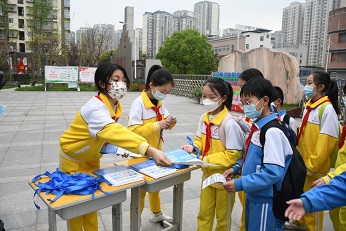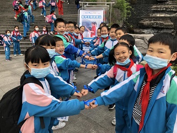 圖三:通川區(qū)一小學(xué)生系上藍(lán)絲帶