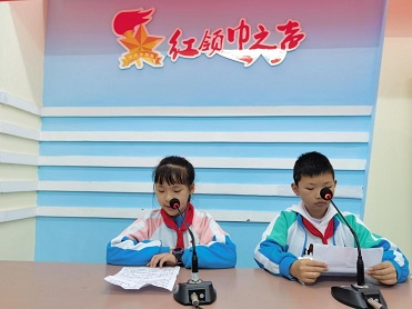圖二:通川區(qū)一小學(xué)生在校園廣播站閱讀孤獨(dú)癥科普文章