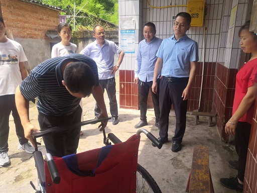 宋書記一行首先深入平攤鎮(zhèn)石峰村徐大碧和劉漢成家中,了解殘疾人證辦理情況和其他惠政策宣傳落實情況,聽取他們對開展好殘疾人工作的意見和建議,并為徐大碧送去急需的輔助器具輪椅1臺。