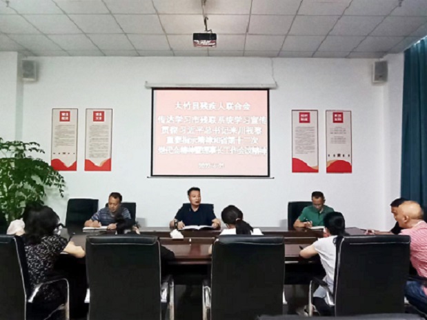 6月21日,大竹縣殘聯(lián)召開機關全體職工會議,傳達學習市殘聯(lián)系統(tǒng)學習宣傳貫徹習近平總書記來川視察重要指示精神和省第十二次黨代會精神暨殘聯(lián)理事長工作會議精神?h殘聯(lián)黨組副書記、理事長王方兵主持會議并講話。