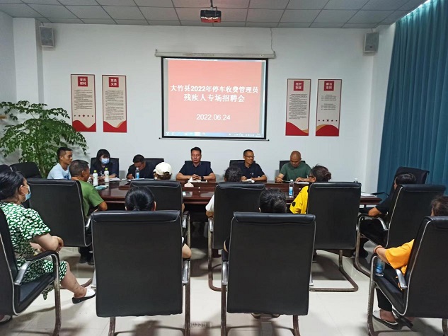 6月24日,大竹縣殘聯(lián)召開了大竹縣2022年停車收費管理員殘疾人專場招聘會,王方兵理事長主持并講話。王方兵理事長表示,一是縣殘聯(lián)將會深入更多企事業(yè)單位及民營企業(yè),宣傳按比例安排殘疾人就業(yè)政策法規(guī),開發(fā)更多適合殘疾人就業(yè)的崗位,主動接納安置殘疾人就業(yè)。二是將進(jìn)一步加大對殘疾人培訓(xùn)力度,為企業(yè)提供更多更好的崗位人才,鼓勵殘疾人自尊自信、自立自強、珍惜機會,以實際行動贏得社會的理解和尊重,實現(xiàn)自我人生價值。