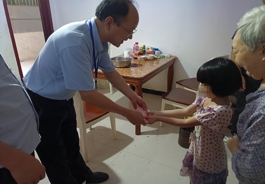 專家組先后走進5個鄉(xiāng)鎮(zhèn),入戶回訪和慰問了5名進入普幼普小隨班就讀的聽障兒童,詳細了解了他們融合教育、家庭康復及日常生活等情況。其中一名佩戴助聽器的聽障兒童聽力損失已符合植入人工耳蝸條件,在融合教育中溝通、認知方面還存在著一些問題,但由于家庭情況特殊,爺爺奶奶均患有腦梗死,母親有智力障礙,一家人生計只能靠低保和父親種植維持,孩子植入人工耳蝸后的康復訓練將無人陪伴,父親只能放棄申請;專家組通過上門服務,針對孩子存在的問題做了現(xiàn)場指導,并送去慰問金500元,同時我們將繼續(xù)跟進隨訪該孩子的人工耳蝸植入、融合教育、家庭康復、生活等情況。