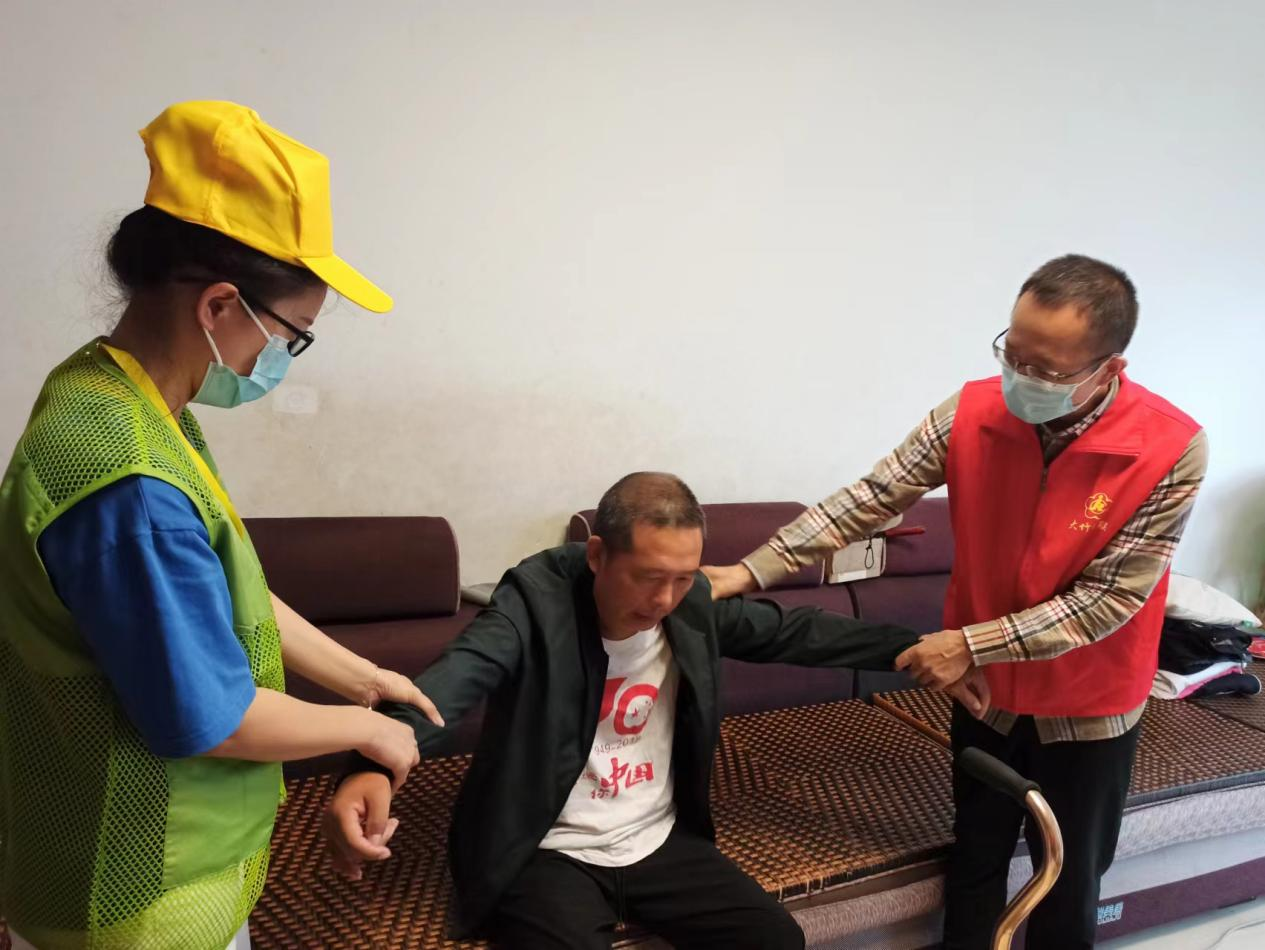 志愿者為東柳社區(qū)困難殘疾人做居家保健服務以及整理家庭環(huán)境衛(wèi)生