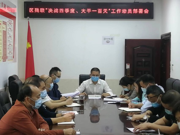 9月29日,達(dá)川區(qū)殘聯(lián)召開“決戰(zhàn)四季度、大干一百天”工作動(dòng)員部署會(huì),會(huì)上黨組書記宋學(xué)春首先傳達(dá)學(xué)習(xí)了市委、區(qū)委“決戰(zhàn)四季度、大干一百天”工作動(dòng)員部署會(huì)精神,再結(jié)合我會(huì)工作實(shí)際安排部署相關(guān)工作。