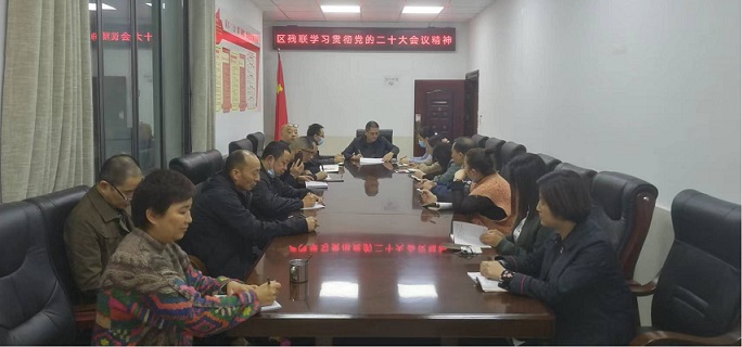10月24日上午,達(dá)川區(qū)殘聯(lián)召開(kāi)全體干部會(huì)議,集中學(xué)習(xí)貫徹黨的二十大會(huì)議精神,研究部署宣傳學(xué)習(xí)和貫徹落實(shí)工作。機(jī)關(guān)全體干部職工及下屬單位所有黨員干部參加學(xué)習(xí)。