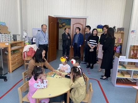 圖二:四川文理學(xué)院特殊教育專(zhuān)業(yè)教師調(diào)研聽(tīng)障兒童蒙氏集體教學(xué)班