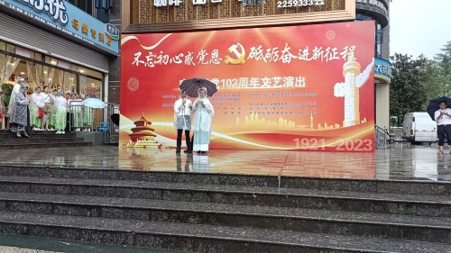 演出過程中,下著雨,演員們激情絲毫不減,用甜美的歌喉和優(yōu)美的舞蹈,為建黨102周年獻上了一份獨特的禮物,也為觀眾朋友們獻上了一場豐富多彩的文藝盛宴,F(xiàn)場觀眾撐著雨傘駐足觀看,不時發(fā)出雷鳴般的掌聲。觀眾們紛紛表示“這樣的演出真不錯,在建黨節(jié)來臨之際各單位、社區(qū)就應該組織這樣接地氣的演出,不僅豐富我們廣大居民的業(yè)余生活,也讓大家感受到黨的溫暖、光輝和當代正能量就在我們身邊”。